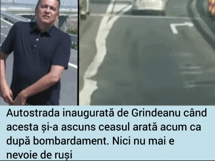 Mai țineți minte bucata de autostradă inaugurată de Grindeanu electoral, acum un an – eveniment rămas un istorie deoarece Grindeanu și-a ascuns ceasul ca să nu fie filmat? E o ieșire spre A2 în direcția Constanța. Acum, acea bucată de autostradă (și în special porțiunea care apărea în videoul de la inaugurare) arată așa cum se putea intui că va arăta încă de când Grindeanu își ascundea ceasul. Arată ca și când s-ar fi furat al materiale ca să se cumpere ceasuri scumpe. Arată ca după bombardament. Doar că nu a picat nicio bombă. Ceea ce înseamnă o economie la bugetul Rusiei. Bravo!