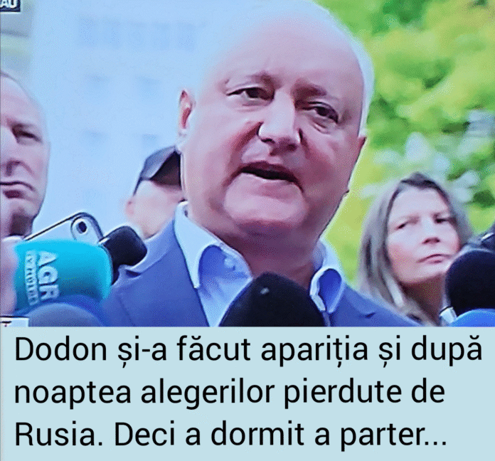 Apariție surpriză pe străzile Chișinăului în această dimineață, după pierderea alegerilor de către Rusia: Igor Dodon, artizanul filo-rus al pierderii. Prezența lui pe stradă uimește, deoarece de regulă după asemenea asemenea isprăvi obiceiul rusesc e să te tragă curentul la etaj și apoi pe geam.