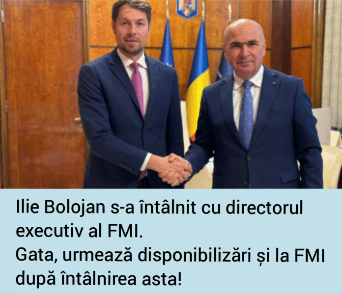 Premierul Ilie Bolojan a avut o întrevedere cu Jeroen Clicq, director executiv al Fondului Monetar Internaţional. În urma acestei întâlniri, domnul Clicq s-a angajat să dea afară 20% din funcționarii FMI și să renunțe pentru ceilalți la primele de Crăciun până își mai revine și FMI-ul cu banii.