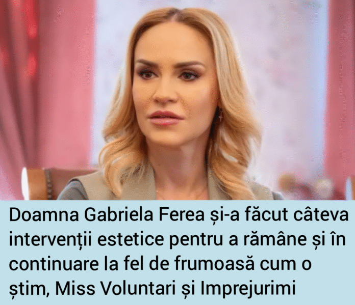 Doamna Gabriela Ferea, fostă Gabi Ferească Dumnezeu, este suspectată că și-ar fi injectat niște acid din acela dumnezeiesc pentru conservarea frumuseții de la natură pe timp cât mai îndelungat. Poate chiar pentru eternitate. Ca urmare a acestei intervenții mai mult decât îmbucurătoare pentru ochiul oricui, doamna Ferea rămâne și în continuare Miss Voluntari și Suburbii (inclusiv București, principala suburbie a Voluntariului). Excelent.