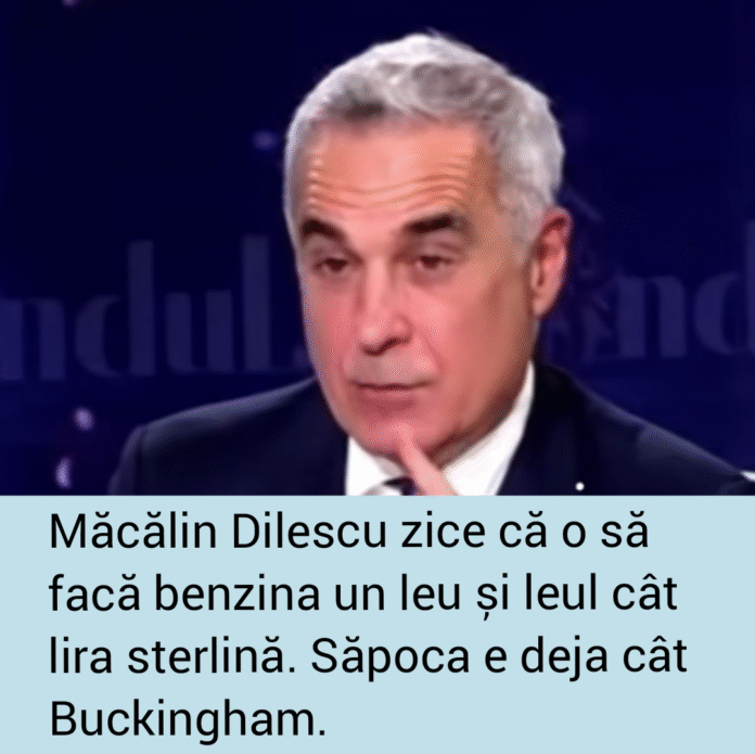 După ce Măcălin Delirescu a spus că el va face leul cât lira sterlină, au apărut economiștii care și-au amintit că tot el spusese că va face un leu litrul de benzină. Aceiași economiști au observat că, astfel, declarațiile lui Dilescu încep să capete sens. Litrul de benzină e deja un leu, nu mai trebuie decât să ajungă și leul cât lira sterlină.