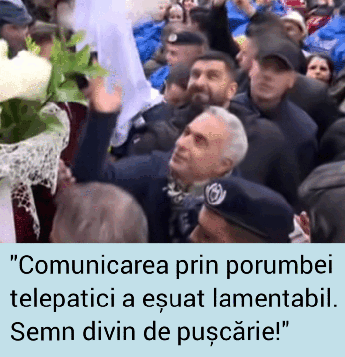 Domnul Georgescu a eliberat ieri câțiva porumbei albi, iar primul porumbel eliberat a picat la pământ după nici o secundă de la lansare. Explicația e destul de simplă: acel porumbel care a picat nu avea semnal la telepatie. Domnule Georgescu, nu mai eliberați porumbei albi până nu verificați că au măcar două linii de semnal la telepatie.