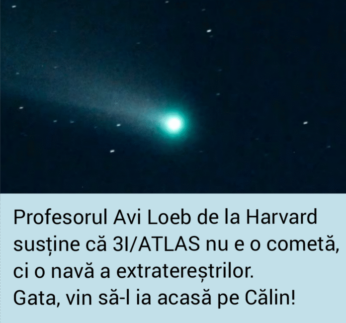 Profesorul Avi Loeb de la Harvard susține că 3I/ATLAS nu e o cometă, ci o navă a extratereștrilor. Argumentul lui: că se apropie de Soare și nu se dezintegrează. Dacă era conferă, avea apă și se evapora. Rămânea doar informația, cometa dispărea.