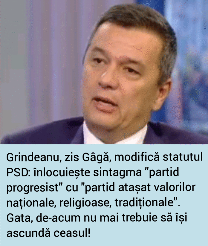 Grindeanu, zis Gâgă, modifică statutul PSD: înlocuiește sintagma ”partid progresist” cu „partid atașat valorilor naționale, religioase, tradiționale”.