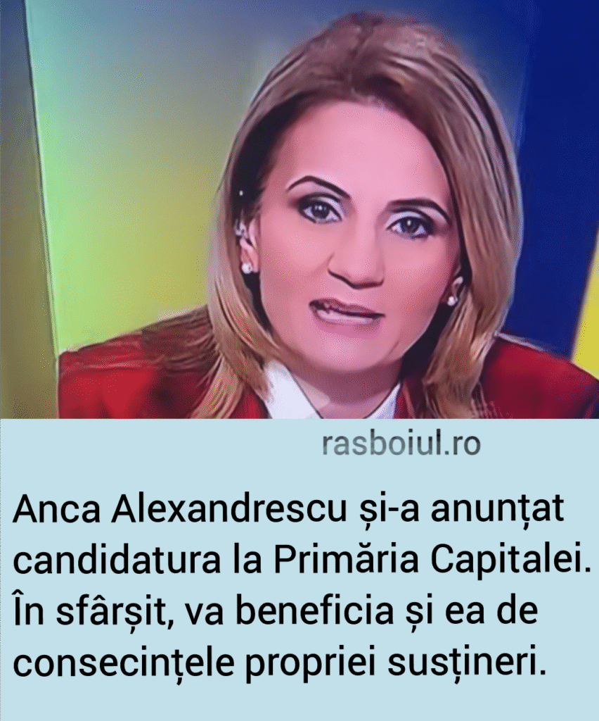 Anca Alexandrescu și-a anunțat plângând candidatura la Primăria Capitalei. Impresionant! Ca atunci când a plâns Băsescu și a zis „Dragă Stolo”. Doamna Alexandrescu putea să îl cheme pe dl Georgescu lângă ea și să zică „Draga stoluri”. Dacă pierde, se știe: turul 1 ânapoi!