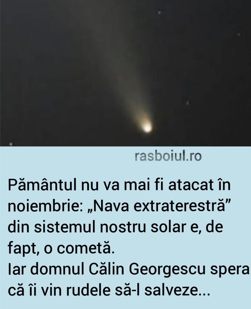 Ultimele imagini venite de la un telescop de pe orbită arată că „nava extraterestră” care ar fi urmat să ne atace în noiembrie e doar o cometă. Și nici războiul nu a început în septembrie…