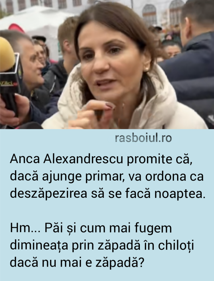 Anca Alexandrescu promite că deszăpezirea se va face noaptea. Perfect, dar atunci dimineața cu ce mai testăm spiritul dac în chiloți prin nămeți?